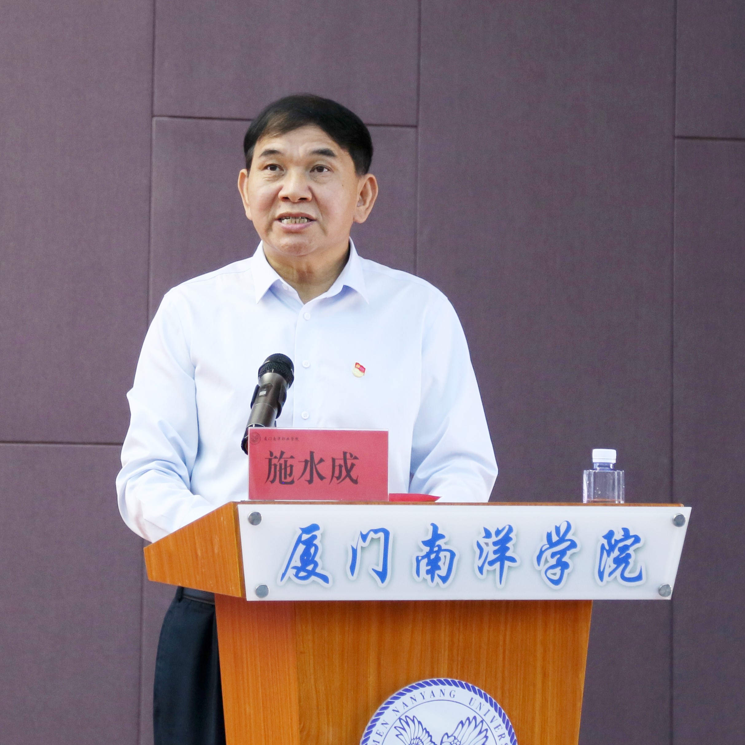南洋學院黨委書記施水成上臺致辭并介紹本次競賽亮點,除原有賽事外,今年還增加了學前教育專業教育技能競賽,這是廈門第一次舉辦該專業的技能競賽,具有重要意義。技能大賽推動了產教融合、校企合作,促進了人才培養和產業發展的結合,已經成為廣大師生展示風采、追夢圓夢的廣闊舞臺,成為促進我市職業教育發展的重要抓手。