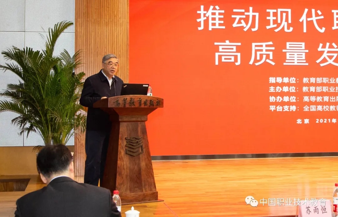 教育部職業(yè)教育與成人教育司林宇副司長(zhǎng)在報(bào)告中分析了職業(yè)教育的宏觀(guān)發(fā)展形勢(shì)。他指出,要從加快構(gòu)建以國(guó)內(nèi)大循環(huán)為主體、國(guó)內(nèi)國(guó)際雙循環(huán)相互促進(jìn)的新發(fā)展格局的高度,深刻理解黨中央國(guó)務(wù)院對(duì)于職業(yè)教育的高度重視。2021年是職業(yè)教育發(fā)展的重要一年,習(xí)近平總書(shū)記對(duì)職業(yè)教育工作作出重要指示,全國(guó)職業(yè)教育大會(huì)勝利召開(kāi),中辦國(guó)辦印發(fā)《關(guān)于推動(dòng)現(xiàn)代職業(yè)教育高質(zhì)量發(fā)展的意見(jiàn)》,《職業(yè)教育法》修訂工作取得重要進(jìn)展,職業(yè)教育受重視的程度前所未有,也肩負(fù)著更重大的歷史使命。目前,我國(guó)職業(yè)教育發(fā)展取得突破性進(jìn)展,規(guī)模上實(shí)現(xiàn)半壁江山,為經(jīng)濟(jì)社會(huì)發(fā)展提供了有力的人才支撐。中職畢業(yè)生就業(yè)率連續(xù)10年保持在95%以上,高職畢業(yè)生半年后就業(yè)率超過(guò)90%,70%的職業(yè)學(xué)校畢業(yè)生在縣市就近就業(yè);現(xiàn)代制造業(yè)、新興產(chǎn)業(yè)新增從業(yè)人員70%以上來(lái)自職業(yè)院校。但同時(shí),職業(yè)教育還存在投入少,底子薄,差異巨大等問(wèn)題。實(shí)現(xiàn)職業(yè)教育高質(zhì)量發(fā)展,宏觀(guān)上至少有四個(gè)方面的工作需要引起高度重視:一是要優(yōu)化定位,尤其是職教本科出現(xiàn)以后和構(gòu)建現(xiàn)代職業(yè)教育體系過(guò)程中,現(xiàn)代職業(yè)教育的邊界確定、層級(jí)劃分、內(nèi)在邏輯、外部關(guān)系將越來(lái)越成為影響今后職業(yè)教育健康有序發(fā)展的重要內(nèi)容;二是要補(bǔ)齊短板,一方面要加快健全現(xiàn)代職業(yè)教育體系,保證優(yōu)質(zhì)人才供給和對(duì)學(xué)生的公平,另一方面要著力設(shè)計(jì)構(gòu)建有效的投入機(jī)制,切實(shí)改善職業(yè)院校特別是中職的辦學(xué)條件;三是要大力推進(jìn)產(chǎn)教融合,一方面通過(guò)深入的產(chǎn)教融合充實(shí)條件、提升質(zhì)量、升級(jí)服務(wù),另一方面也通過(guò)提升職教能力進(jìn)一步密切產(chǎn)教融合;四是要抓住現(xiàn)代信息技術(shù)快速成熟的時(shí)機(jī),力爭(zhēng)實(shí)現(xiàn)“彎道超車(chē)”。