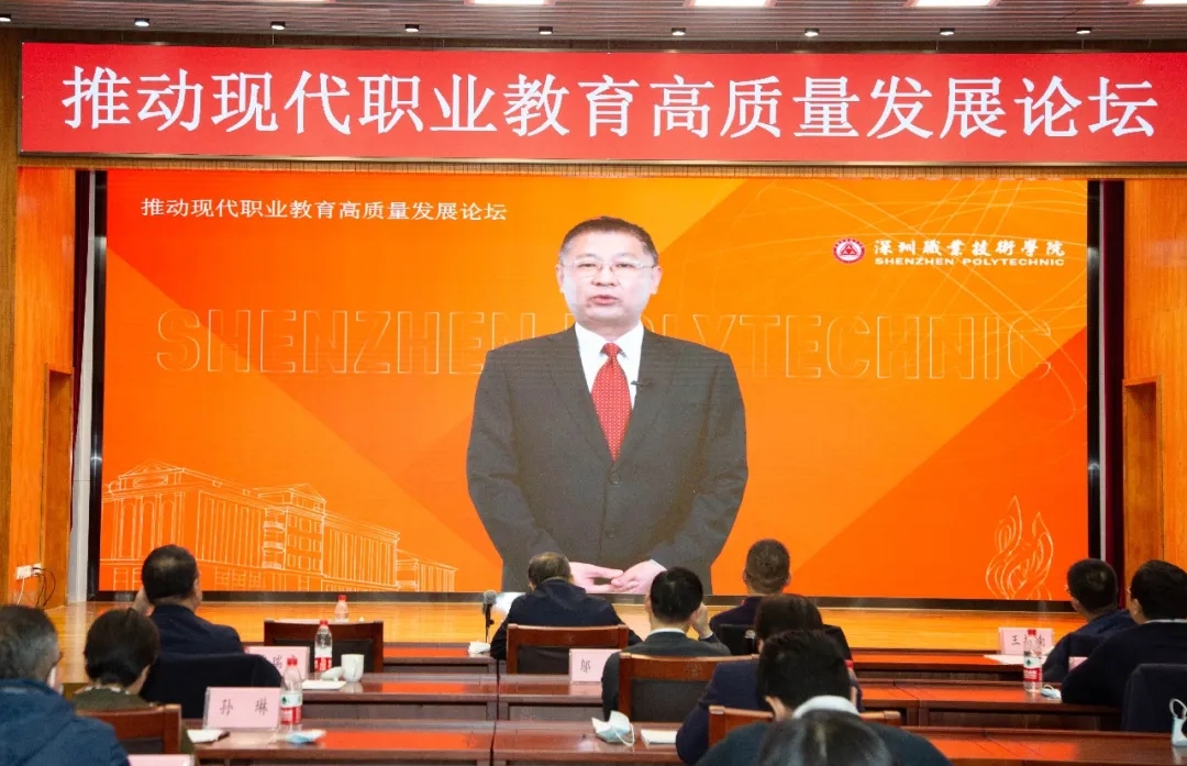 深圳職業(yè)技術(shù)學(xué)院黨委書(shū)記楊欣斌,以《努力當(dāng)好中國(guó)職業(yè)教育創(chuàng)新發(fā)展的第一艘“沖鋒舟”》為題介紹了深職院辦學(xué)成果、發(fā)展經(jīng)驗(yàn)和未來(lái)愿景。發(fā)展經(jīng)驗(yàn)一是堅(jiān)持立德樹(shù)人,深入挖掘“深圳故事”,詮釋中國(guó)道路,提升思政溫度,為全國(guó)思政課創(chuàng)新提供深圳案例與深圳經(jīng)驗(yàn)。二是深化產(chǎn)教融合、校企合作。其核心密碼是:建立特色產(chǎn)業(yè)學(xué)院,把產(chǎn)業(yè)鏈需求作為辦學(xué)邏輯起點(diǎn);瞄準(zhǔn)世界產(chǎn)業(yè)發(fā)展前沿,對(duì)標(biāo)“最高最新最優(yōu)”;探索適合中國(guó)國(guó)情的職業(yè)教育辦學(xué)模式,形成“中國(guó)方案”。通過(guò)深度產(chǎn)教融合、校企合作,深職院與國(guó)內(nèi)一流企業(yè)實(shí)施了“九個(gè)共同”。未來(lái)的愿景是,把深職院建設(shè)成為高層次技術(shù)技能人才培養(yǎng)高地、產(chǎn)教融合機(jī)制創(chuàng)新高地、名匠大師匯聚高地、應(yīng)用技術(shù)研發(fā)高地、社會(huì)培訓(xùn)服務(wù)高地、全球職業(yè)教育創(chuàng)新高地。