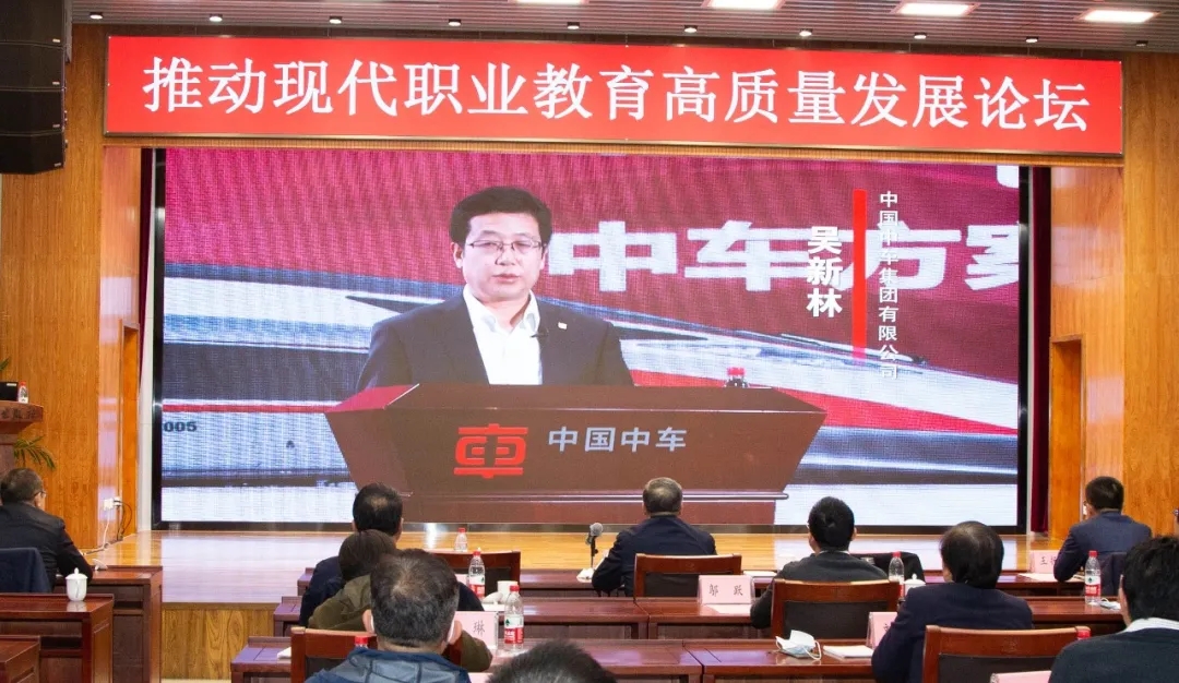 中國(guó)中車(chē)集團(tuán)有限公司人力資源中心副主任吳新林介紹了中車(chē)集團(tuán)深度參與職業(yè)教育辦學(xué)的實(shí)踐探索,提出打造央企職業(yè)教育產(chǎn)教融合典范的目標(biāo),實(shí)施了校企一體、職業(yè)教育與培訓(xùn)一體,統(tǒng)籌專(zhuān)業(yè)規(guī)劃建設(shè)、統(tǒng)籌校企實(shí)訓(xùn)基地建設(shè)的“兩一體、兩統(tǒng)籌”的產(chǎn)教融合改革。探索實(shí)施了“三化”管理、“三共”賦能改革:職業(yè)教育、中車(chē)培訓(xùn)中心、實(shí)訓(xùn)基地一體化管理,構(gòu)建中車(chē)特色職業(yè)教育與培訓(xùn)體系、實(shí)施體系化管理,制定產(chǎn)教融合“中車(chē)方案”、實(shí)施“項(xiàng)目化”管理,推進(jìn)企業(yè)資源共享、校企合作共建、多方協(xié)作共融。最終實(shí)現(xiàn)學(xué)校內(nèi)涵建設(shè)“強(qiáng)起來(lái)”、專(zhuān)業(yè)建設(shè)結(jié)構(gòu)“優(yōu)起來(lái)”、崗課賽證融通“活起來(lái)”的發(fā)展目標(biāo),推動(dòng)職業(yè)教育高質(zhì)量發(fā)展。