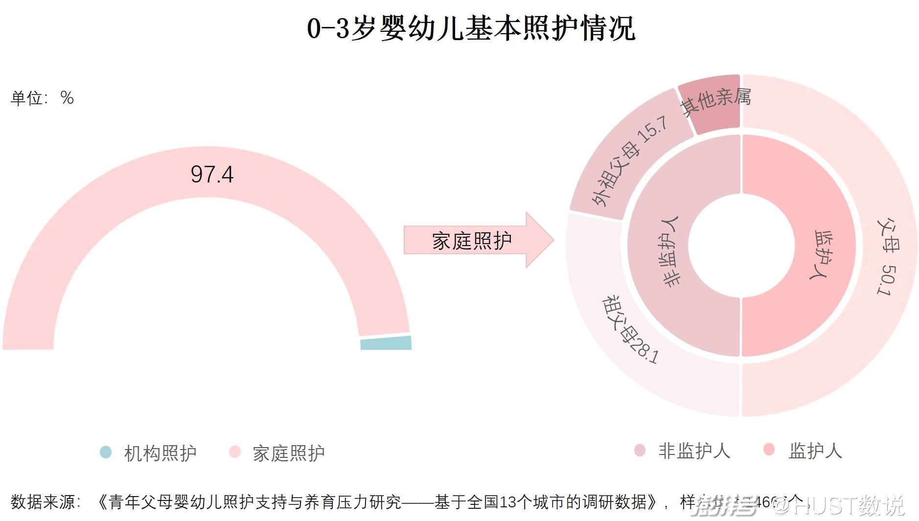 現階段我國0-3歲嬰幼兒仍以家庭照護為主,即父母自己帶或者由祖父母帶,只有極少數家庭選擇托育機構照護。