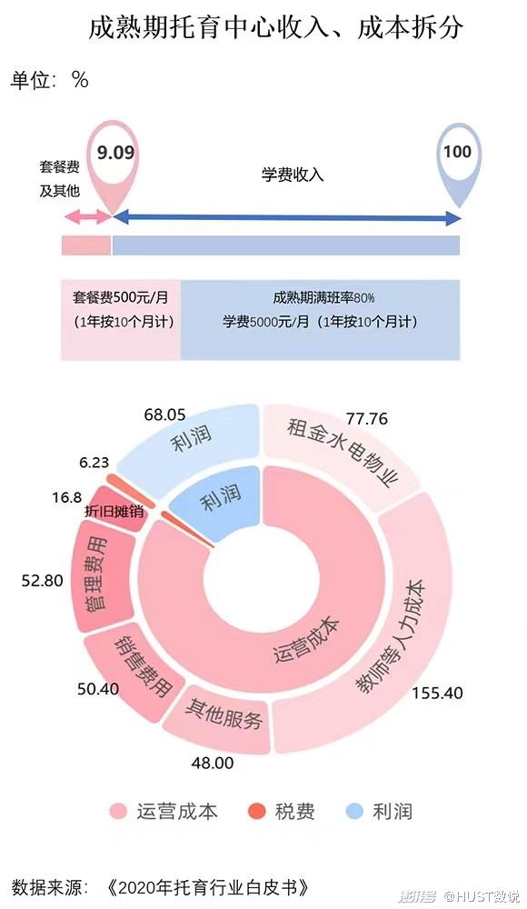 “收費高”,托育機構也是“有苦難言”。近年來托育機構跑路事件頻發,導致人們對其信任度下降,機構招生困難。經分析,一家成熟期托育中心,在客單價5000元的情況下,55%的滿班率將是企業生存的生命線,一旦低于此閾值,托育機構將面臨虧損。